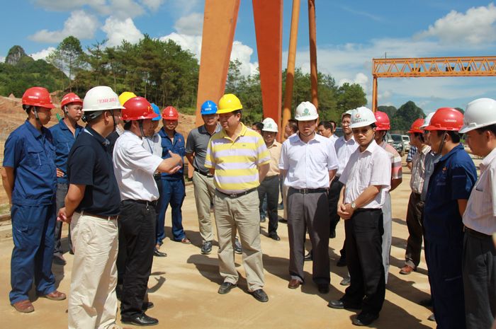 2011年8月3日下午,區(qū)交通運(yùn)輸廳廳長(zhǎng)潘巍一行蒞臨由廣西壯族自治區(qū)公路橋梁工程總公司承建的靖那1標(biāo)施工現(xiàn)場(chǎng)視察工作。