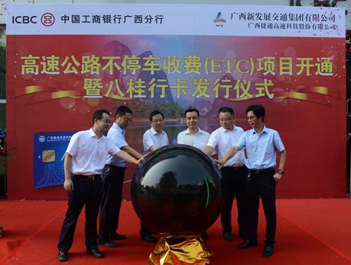 劉明洪在致辭中表示,早在今年3月份,工行就成為廣西首批入圍ETC項(xiàng)目的合作銀行,雙方成功簽署了ETC項(xiàng)目合作協(xié)議,并取得了豐碩的合作成果,此次儀式正式啟動(dòng),標(biāo)志著雙方合作邁上一個(gè)全新的高度。集團(tuán)公司將不斷推進(jìn)ETC業(yè)務(wù)市場(chǎng)拓展,未來(lái)ETC將不只限于高速公路收費(fèi),還會(huì)不斷向加油站、停車場(chǎng)、城市小區(qū)、普通公路等相關(guān)領(lǐng)域延伸。