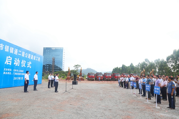 玉林市交通運(yùn)輸局局長(zhǎng)何東真主持儀式。玉林市市交運(yùn)局、發(fā)改委、住建委、國(guó)土局、林業(yè)局等相關(guān)部門負(fù)責(zé)人,各縣(市、區(qū))政府分管交通工作有關(guān)部門負(fù)責(zé)人、興業(yè)縣干群代表以及新發(fā)展集團(tuán)下屬企業(yè)代表參加了啟動(dòng)儀式。(陳福喜 文/圖)